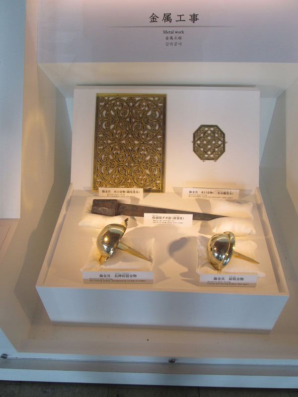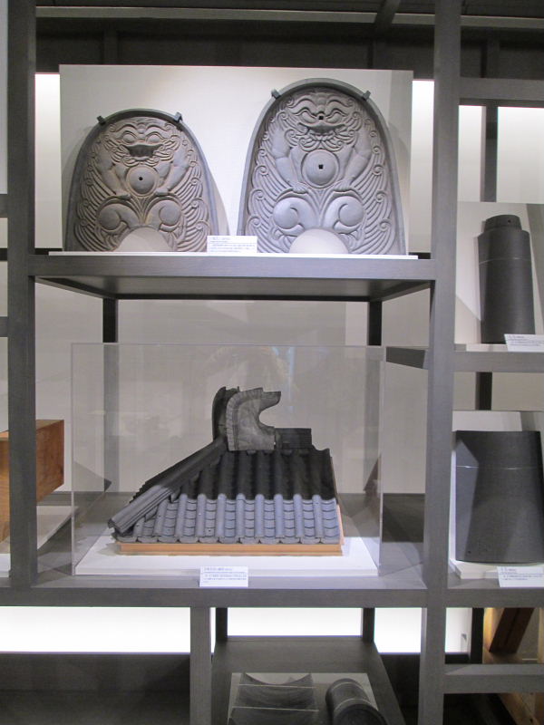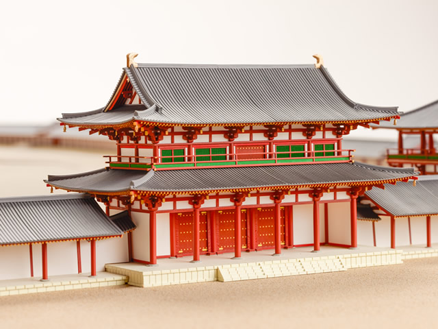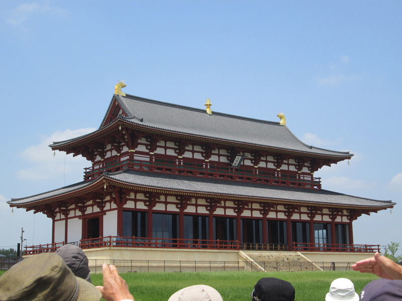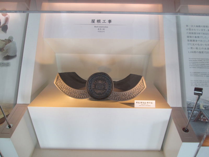 ![]() 復元された平城宮第一次大極殿の屋根には 中国古代建築の類例に近い大棟中央飾りが設置されている。 |