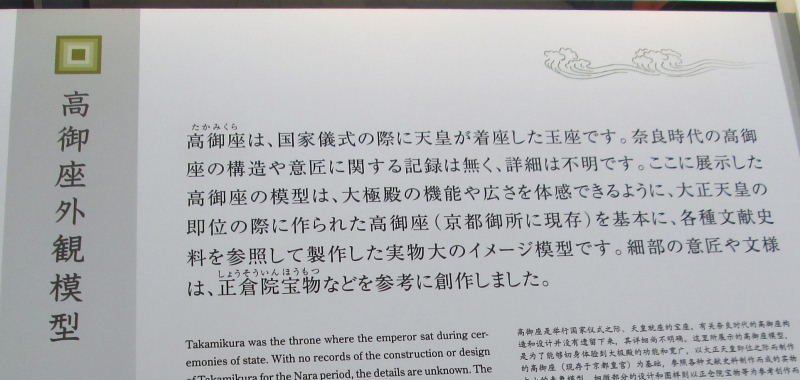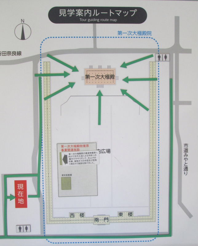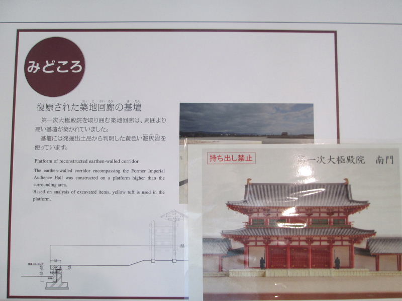 ![]() 説明の方のお話では、この情報館の大きさで、 第一次大殿院の築地塀が復元されるようです。大きさに驚きました! |