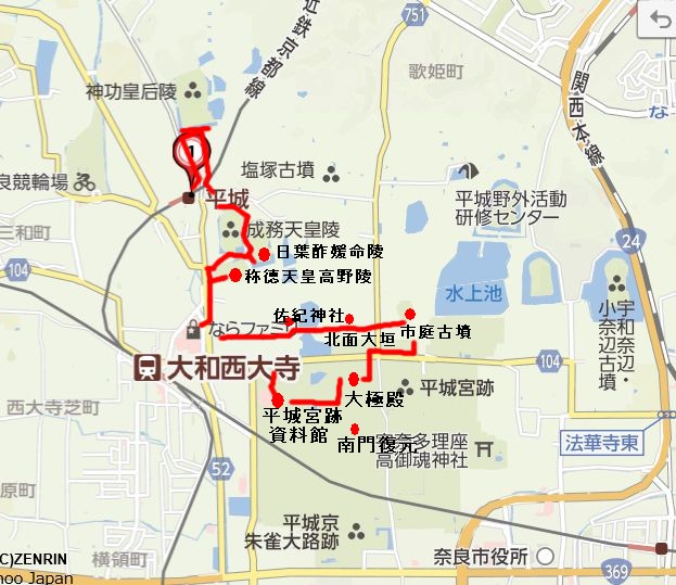 | 6月9日、佐紀古墳群と平城宮跡周辺ウォークMAP |