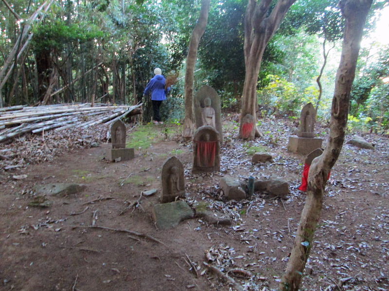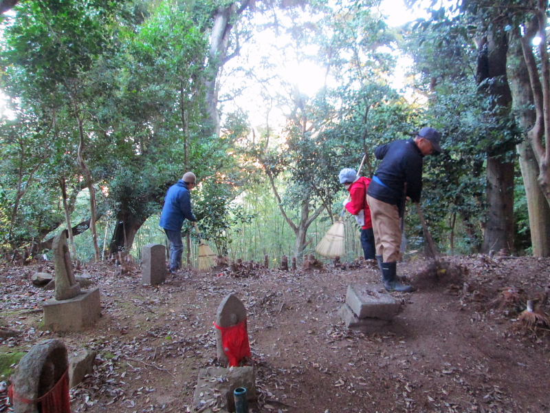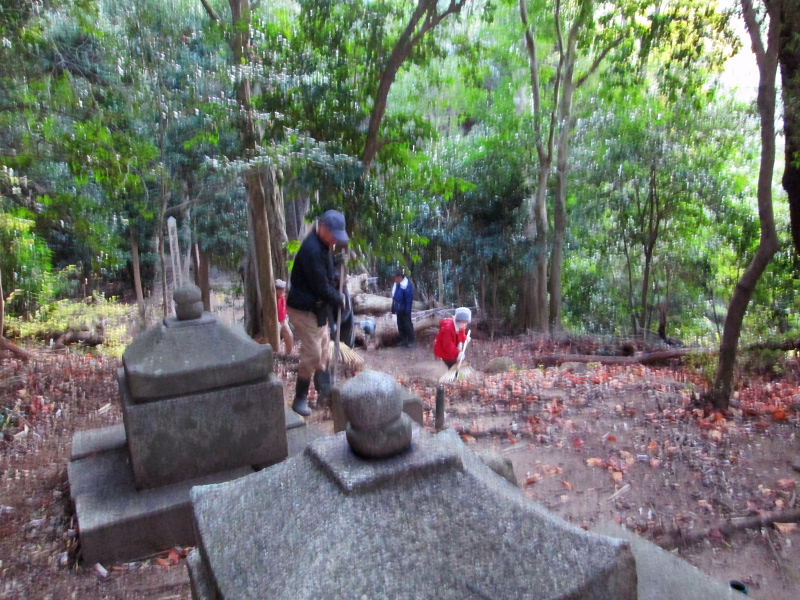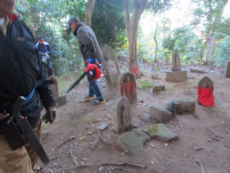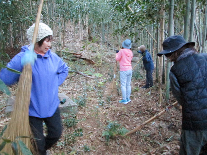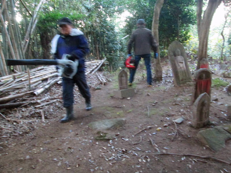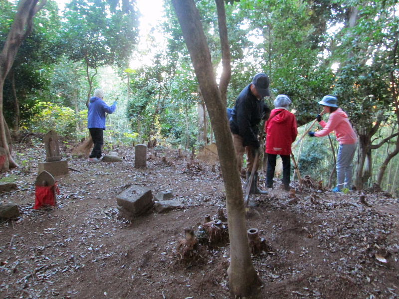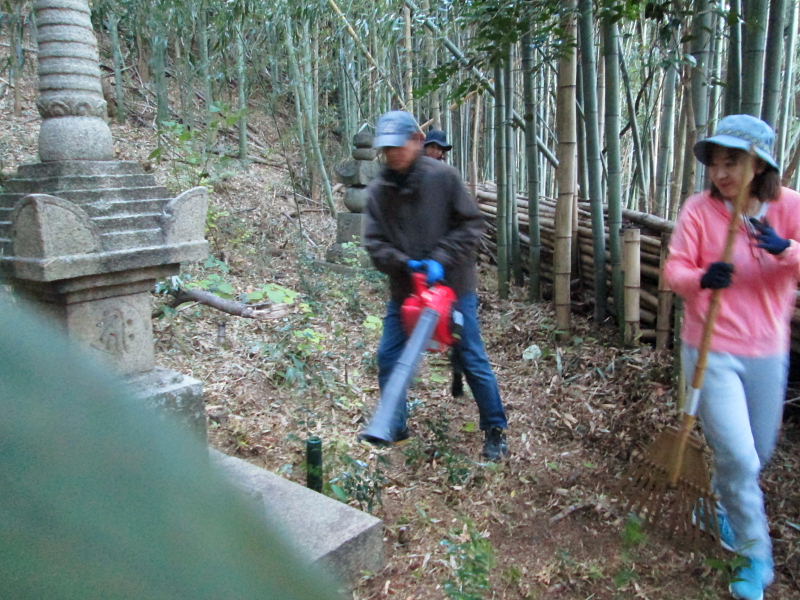 墓の周りの落ち葉や小枝、暴風で倒れた樹木や竹などを取り払い、