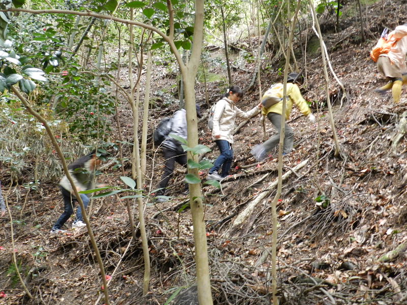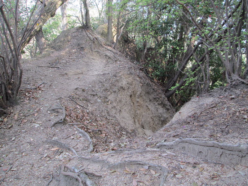 ![]() 尾根へのショートカットも登山道 急な階段を苦労して登って行く |