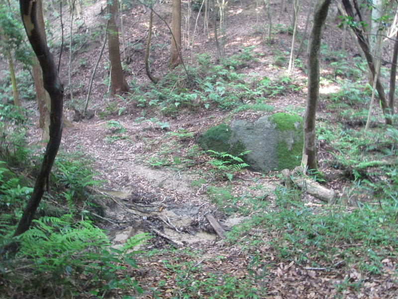 ![]() 今回のコースは、この分岐点の手前の方へ下ります 谷奥狸谷の南端から尺治北谷へ |
