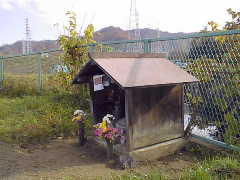 | 清水谷古墳 交野市東倉治5丁目にある横穴式石室を具えた古墳である。 東倉治の大阪府警察学校の南、北両脇の道が山裾で交差する、その交差点の東に位置している。標高70m、西への眺望が開け東に交野山系がある。 この清水谷古墳は、昭和42年3月末、当時この土地の所有者であった中野氏が蜜柑の苗木を植えようとして地面を50cmほど掘り下げた際、横穴式石室の天井石が偶然見つかり、存在が確認された古墳である。 墳丘は9m、墳径は12m前後。主体部は、南北にやや長い楕円形の墳丘の中央に、南に開口する横穴式石室が設けられている。現在、横穴式石室の上は、覆屋が造られ石室を保護している。この横穴式石室は、「無袖式の横穴式石室」である。 この山麓地方は、古代の機織業を主とした渡来人の居住地が南から北へと続いて、はたやま(交野市寺)、はたもの(交野市倉治現在の倉治より山寄り)、はただ(枚方市津田、当時の集落は清水谷の口)の3機織業集落が、それぞれ山麓扇状地の上に繁栄していた。そして、夫々その集落の附近に横穴式古墳群を築造している。 それは、はたやま集落では竜王山古墳群、はたもの集落では関西電力枚方変電所敷地内の横穴式古墳群である。はただ集落では清水谷古墳が発見されたのみであるが、附近にも古墳らしきものがあるようで、はただ古墳群中の一部と思われる。 また山麓3集落とも、7世紀の築造と推察されている。 |