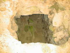 清水谷古墳 左側基底部に箱式棺と 見られる石組みがあり 南側に羨道がある |