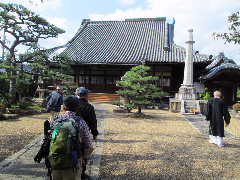 | 2018年11月10日(土)、天候 晴。JR河内磐船駅前に午前9時集合。いつもの元気な方々の姿が見えず14名の参加。午前9時4分の電車に乗車。京橋で乗り換え、天王寺〜近鉄阿部野橋駅〜富田林駅へ10時30分頃到着。 じないまち交流館にて「じないまち絵図」を頂戴し、高尾さんの案内で寺内町を散策。東西400メートル、南北350メートルのこじんまりとした町内に今なお点在する江戸時代以降、各時代を代表する商家や寺院、「仲村家」、「木口家」、「杉田家」、「田守家」、「奥谷家」、「興正寺別院」「旧杉山家住宅」など、綺麗に整備された町並みをゆっくりと見学しながら歩きました。 寺内町センターで昼食。浄谷寺〜本町公園を見学後、近鉄・富田林駅より滝谷不動駅まで乗車。上り道を歩くこと徒歩20分程で日本三大不動の一つ「滝谷不動尊」さんに参拝。 ※高尾さんより当日に頂いたレジュメを参考にさせて頂きました。 また、「富田林市」「寺内町探訪」「ぶらりひとりまち歩き」「興正寺」などのHPを 参照させて頂きましたこと、記して感謝申し上げます。 |