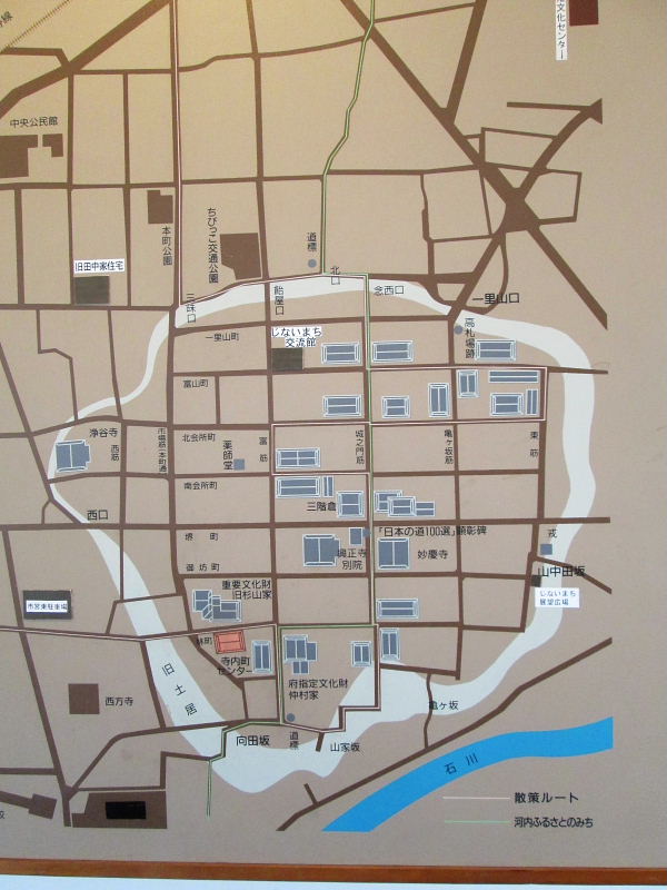 | 富田林寺内町とは真宗の寺院を中心に堀や寺院を中心に堀や土塁で防禦した町をいいます。ちなみにこの「じないまち」は府内唯一、国の「重要伝統的建造物群保存地区」に選定されております。(注・当日交流館で全員に、じないまち絵図をいただけることになっております) | |