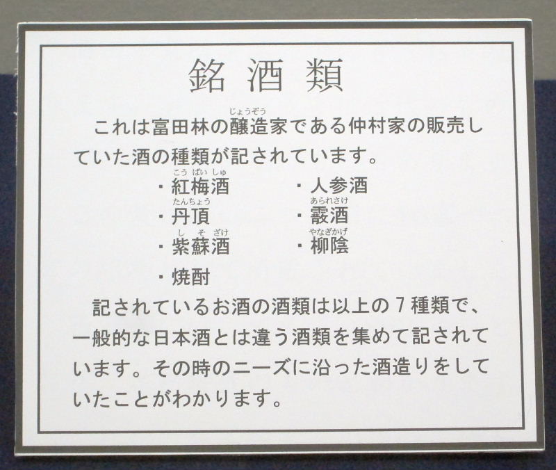 | 河内名所図会、じないまち古絵図、酒造業や木綿問屋で栄えた江戸時代、 明治時代の商家に残る貴重な古道具類、帳簿、写真などの各種資料を展示 |