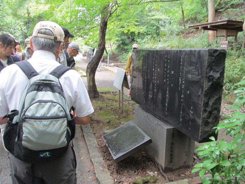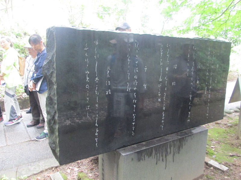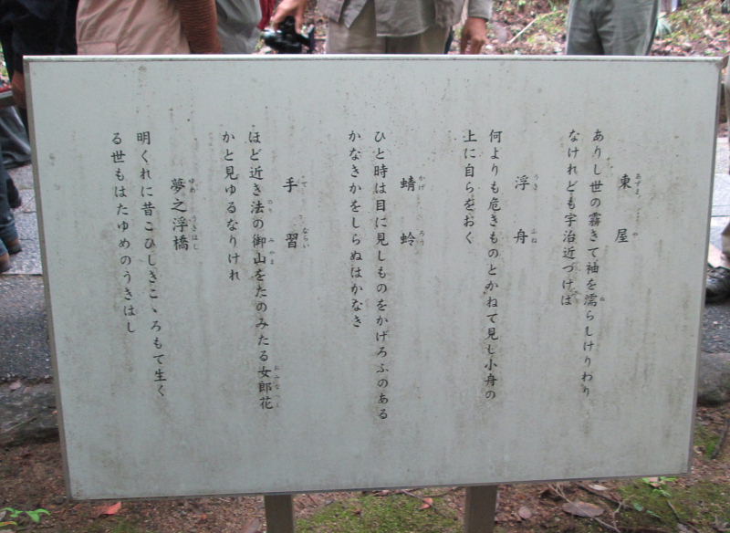 さわらびの道沿い、宇治十帖古跡の総角の近くに与謝野晶子の歌碑がある。 紫式部を大変尊敬していた与謝野晶子が、宇治十帖を詠んだ歌を真筆で刻んだもの |