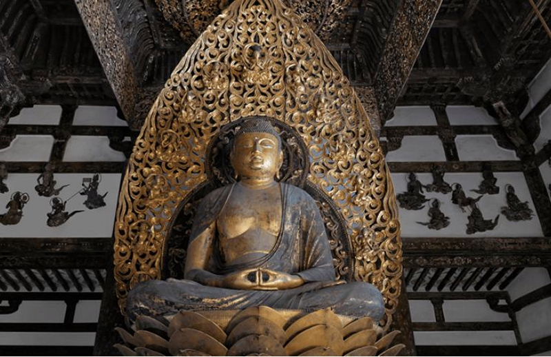 ![]() 阿弥陀如来坐像と二重天蓋・雲中供養菩薩像 (webより拝借) |