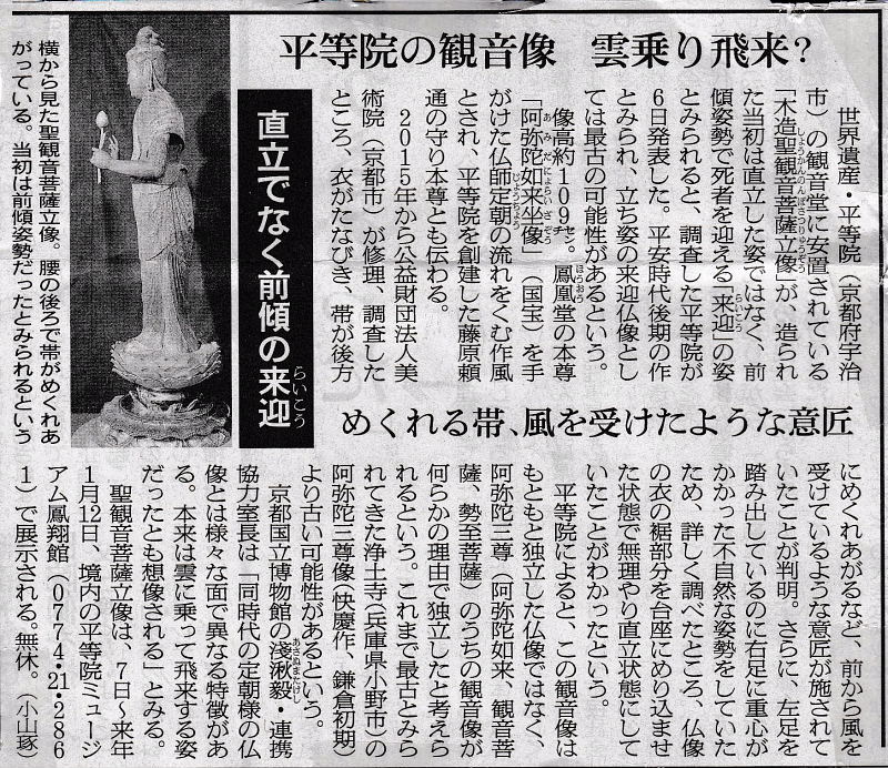 ![]() 朝日新聞 2017.10.7 朝刊記事参照 当日は、ゆっくりと拝見することができ良かったです。 また、この聖観音菩薩像のお顔は本当にきれいな顔立ちに感動しました! |