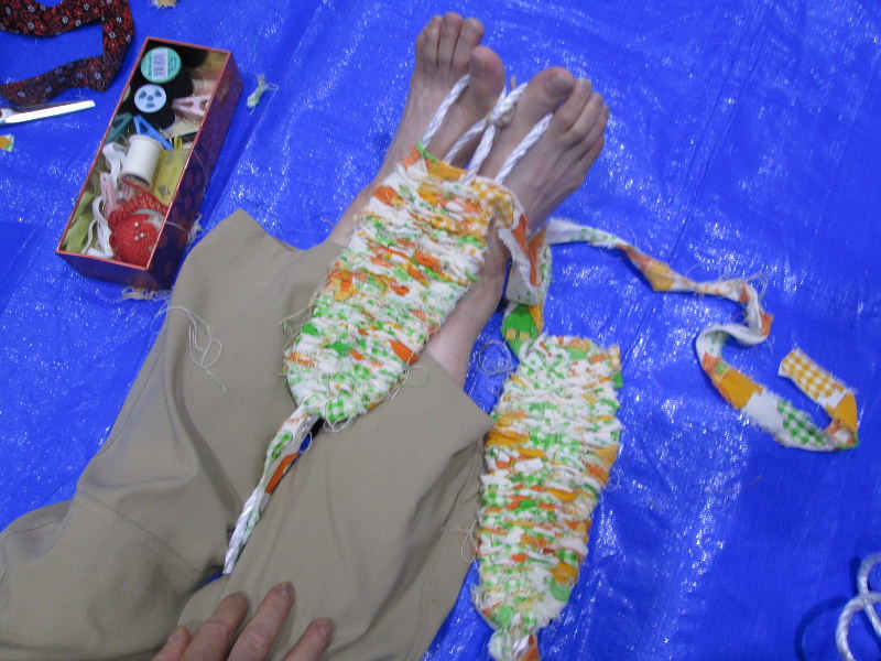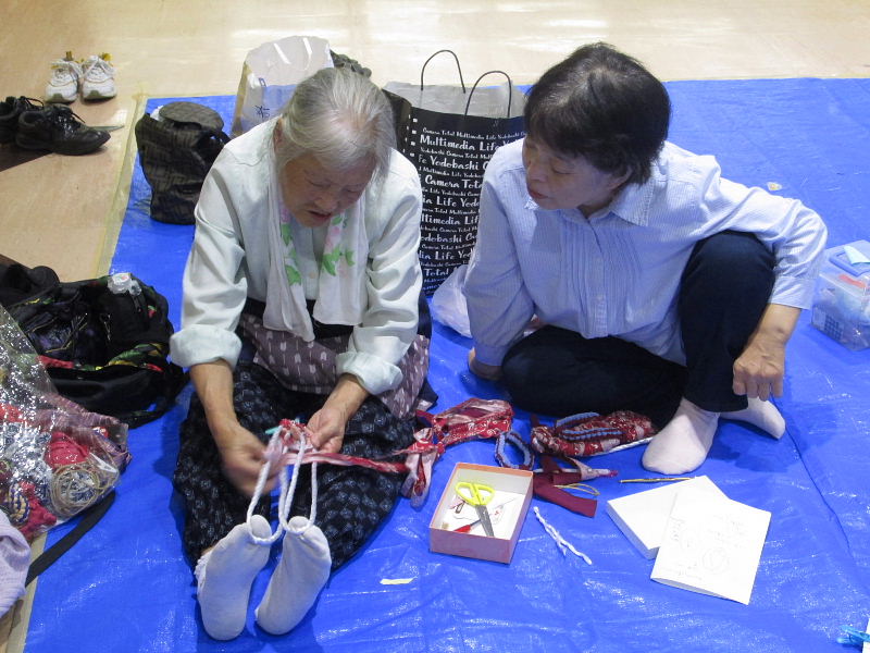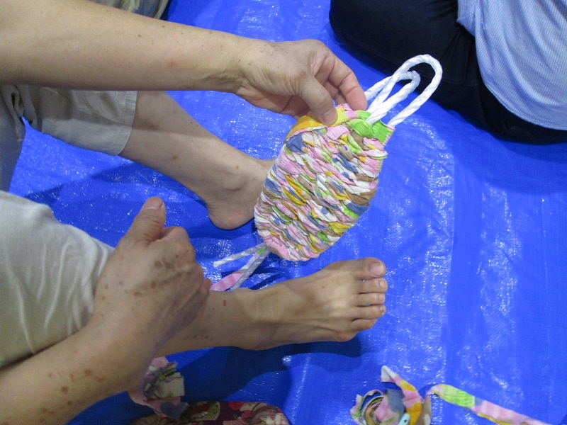 | 開始時間の9時30分前から熱心に布草履作りに挑戦されました。 | |