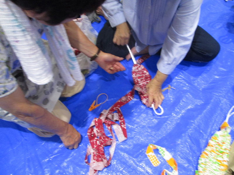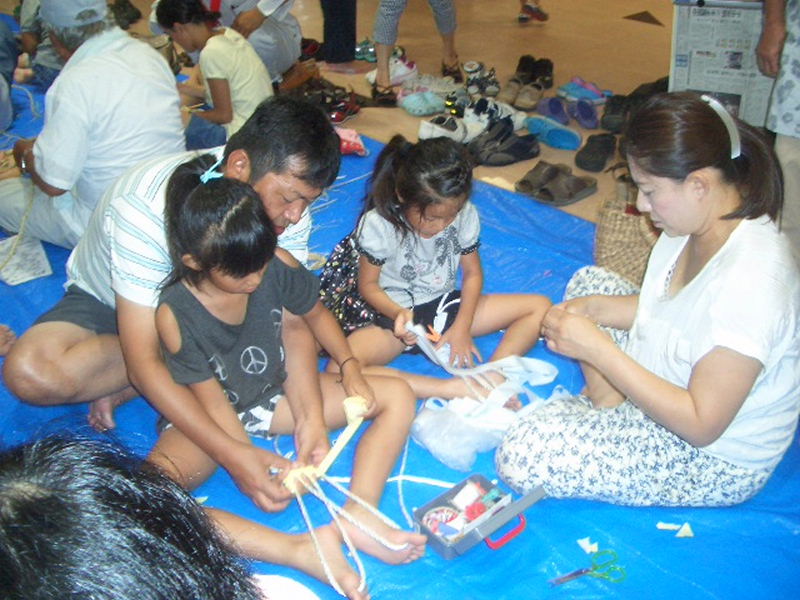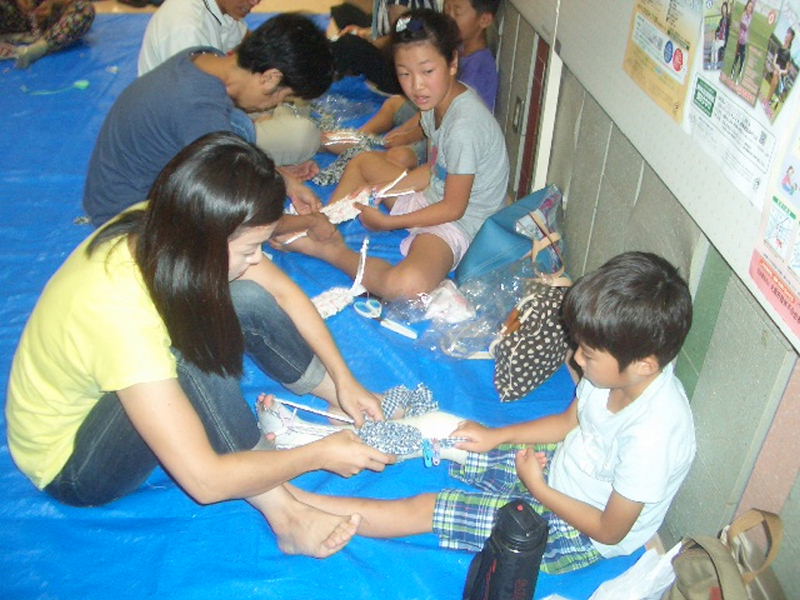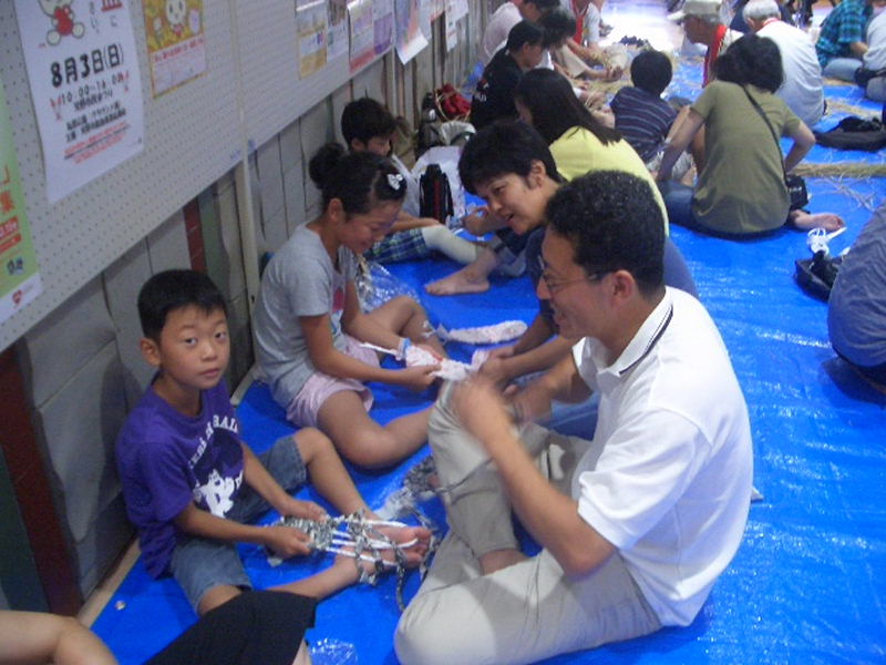 今年は、小学生たちも夏休みの宿題に作りたいとお母さん、お父さんと参加、 大人に負けない手さばきでドンドンと上手に仕上げて行きました。 |
