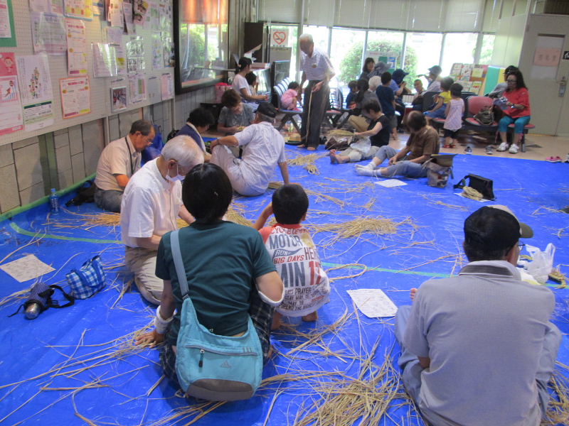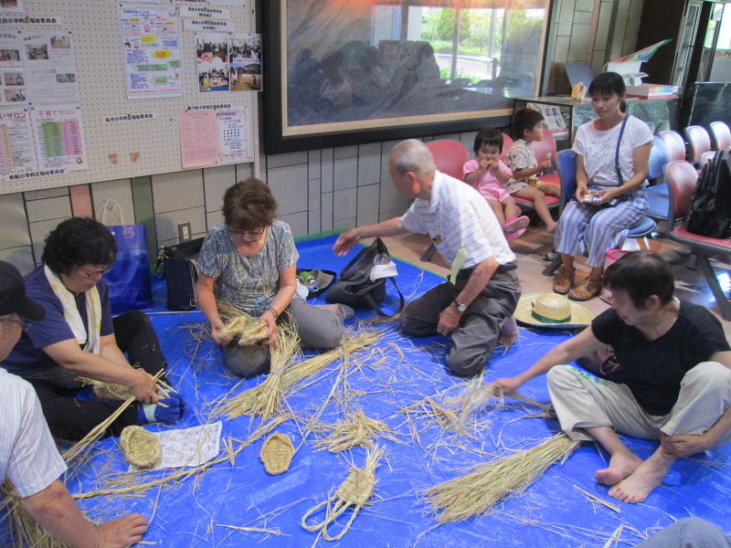 交野古文化同好会 ![]() 2018.7.21(土) 7月21日、午前9時30分、「藁ぞうり作り」に12名、