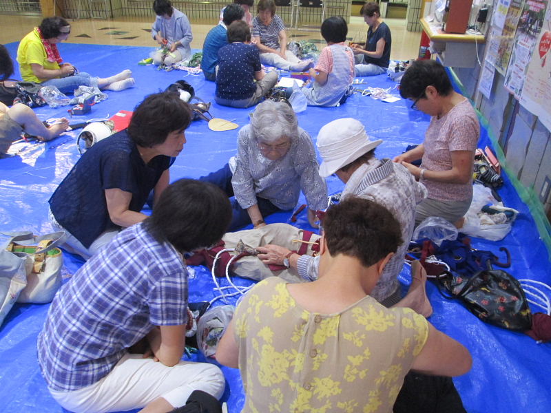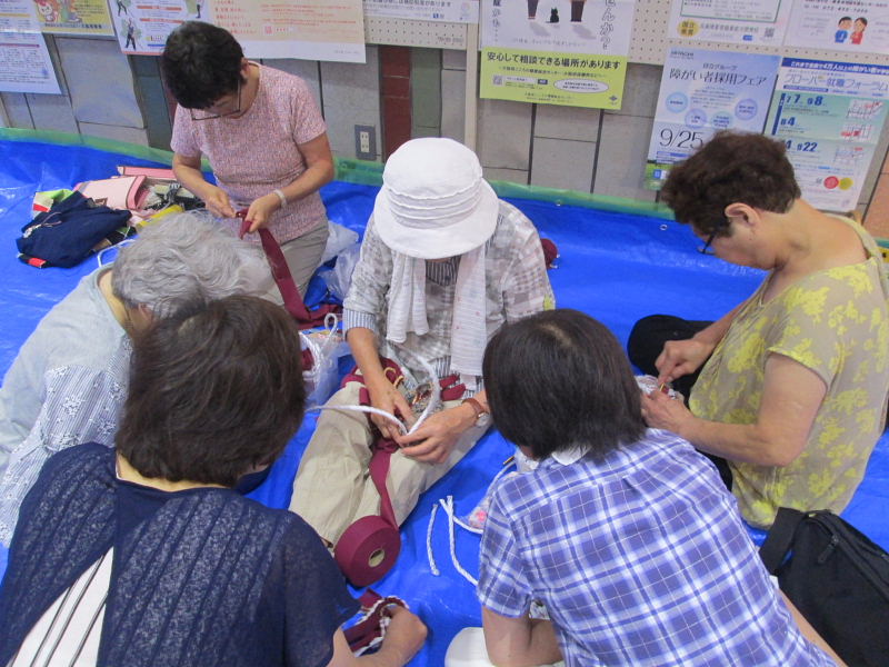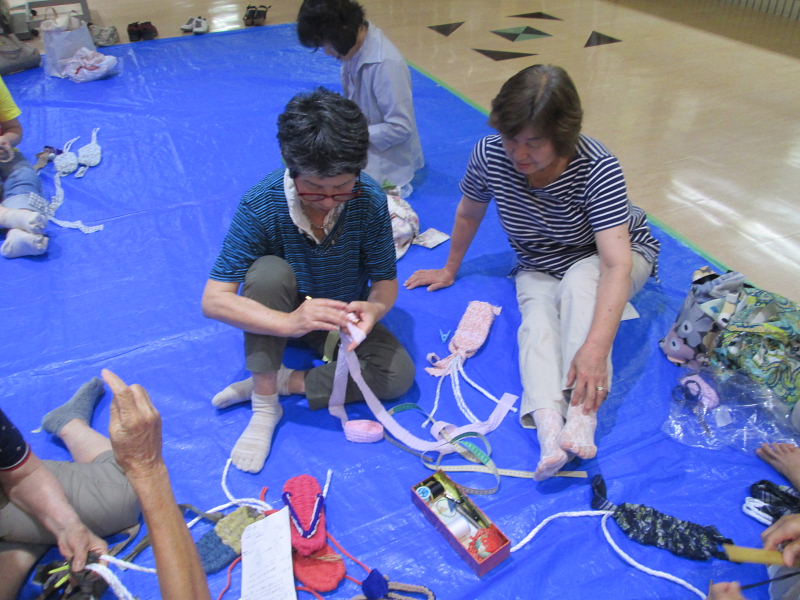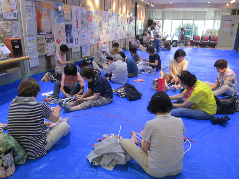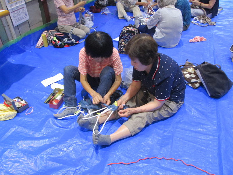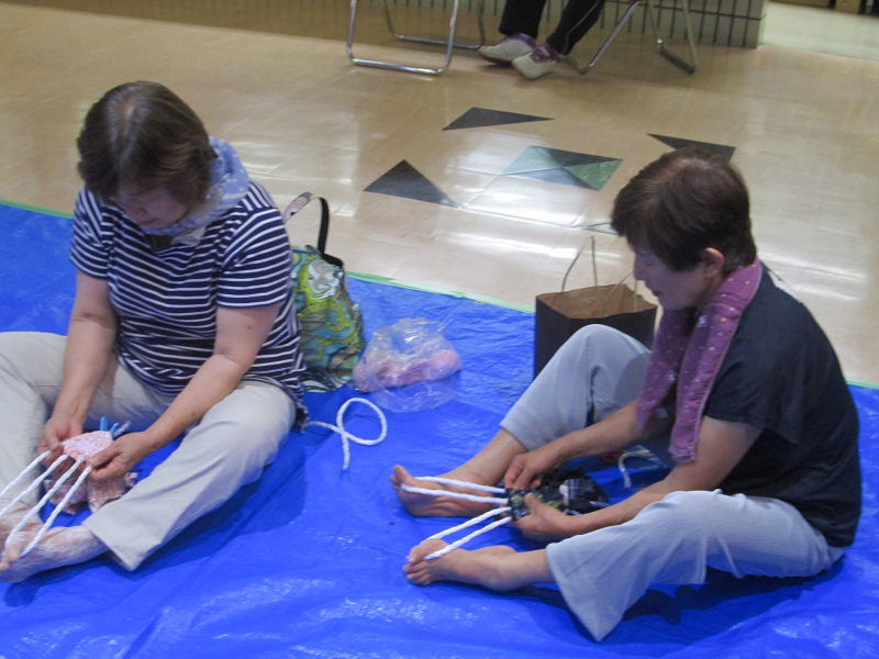 | 開始時間の9時30分前から熱心に布草履作りに挑戦されました。 | |