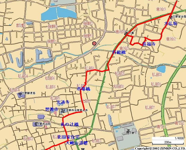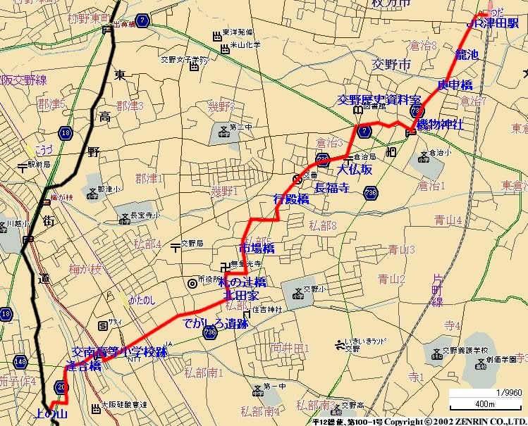 | 行程;JR津田駅→籠池→機物神社→教育文化会館→堂の前の道標→ 長福寺→市場橋→光通寺→想善寺→無量光寺→札の辻橋→北田家住宅→ 砂子橋→逢合橋→上ん山の辻→本尊掛松 12時15分頃頃 徒歩 約 5Km |