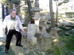 | この後、交野市歴史民俗資料館を訪ね、庭に保管されている沢山の石仏や道標などの中から、彫られている文字を読み合わせして庚申橋付近にあったと言われる上の道標を確認しました。この道標は、道路改修前は道の西側に傾いて立っていたが、改修後東側に移された。その後再度の改修時に掘り起こされて交野市歴史民俗資料館の庭に保管されたもの。 | |||||||||||||