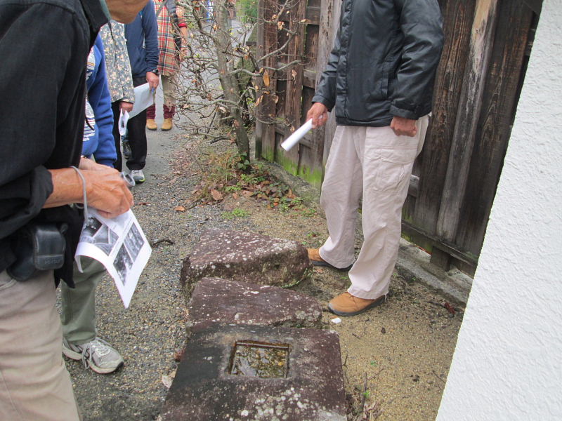 「くぼみ石」の由来を聞く。 昔の子供たちが、餅つき遊びをした石の跡だという。 「この石にじーと耳をあててみ、ぺったんこ、ぺったんこ、ぺったんこ・・・・ぺったんこの音が聞こえてくるやろ」と、亡くなられた奥野平次さんは子供たちにいつも言っておられたという。 |