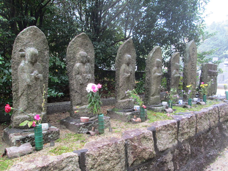 亡くなった人が六道のどこにいようと、地蔵菩薩がそれぞれに合った姿で出現して救ってくれる、こんな願いが六地蔵にはこめられているのです。また、六体地蔵は墓を見守ってくれている。