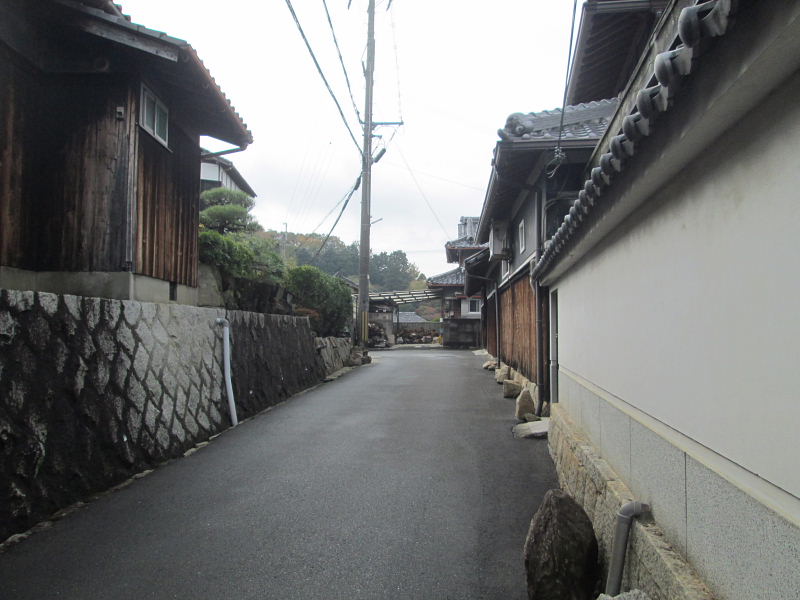 ![]() 北城戸付近 大門酒造正門の「無垢根亭」より大門酒造の長い塀があったが、今は住宅地化している。 山麓沿いを走る山根街道の出入り口に木戸を設けて、 村に出入りする人々を見張ったり、村への乱入者を取り締まったところだ。 |