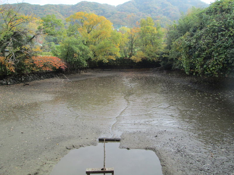 | <史跡ミニガイド> 新川(用水路、森堂池まで1300m) 河内森駅(京阪電車)の北側の道を山に向かって、農協磐船支店の南を通り、山神(尾根)の裾にある傍示道を上がってゆくと、交野市水道局の2基の貯水槽がある。その手前の川が東から西に流れ、貯水槽の左前でどんどんになって谷に落ちる。このあたりから小久保川と呼ぶのだろう。新川は、ここから川下に向かって落ち口の右側にあるU字溝から始まり、堂の池に入る。 「新川は、山神、卵塔、檜木山、楢が谷、檜木谷を経て堂の池まで1300mはあるだろうか。」 この新川は、向井さんや村民の協力で出来たそうである。 「川手をどうつけるかを苦労された。現在の消防署の東側から提灯の灯りで高低をはかったそうである。」「どんなに苦労されたか。千日も熟慮されたという。測量の結果川床がどこの山にかかっても協力することが条件とされた。」 須弥寺の当時の住職も、池底にごみが溜まらないようにと石の阿弥陀様を池の底に安置され、たらい船に乗ってはごみ集めをし、樋からごみを流すことに努力されたそうだ。 森堂池 森南3丁目に円通山須弥寺がある。南側にある池が堂池である。 須弥寺に向かって突き出している丘陵とその西南に同じ方向に出っ張った尾根の間の谷を堰き止めたものである。この池の水は、森の水田に供給されている。面積は43.17アールである。 堂池の海成粘土層 堂池の北側の道の北側の崖に、厚さ2mの海成粘土層が見えます。 海の底にたまって出来た地層を海成層といい、海底に積もった粘土層を海成粘土層という。 昔は、「交野は海でしたという」、証拠である。 森新池 河内森の駅より森へ入る道の途中にあるのが、森新池という。面積は50アールあり、池への水は小久保川のの上流の天田神社と第1幼稚園の東で川に堰があって、私市領へ引く水路と森新池へ引く水路に分かれている。池へはこの谷川の水が天田宮の北を通って入っている。 |