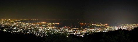 摩耶山頂へは、まやビューライン・ケーブルカー「ゆめあじさい」「にじあじさい」・ロープウェー「おりひめ号」「ひこぼし号」で。古くから信仰の山として親しまれてきたこの山は、天上寺・自然の家・穂高湖の他「1000万ドルの夜景」の絶好のビューポイント・掬星台もあわせ持つ。平成13年夏に南欧風ホテルとしてリニューアルオープンする磨耶ロッジやロープウェイ山上駅駅舎2階のレストラン・まやテラスも見渡す限りの夜景が楽しめる。 ●摩耶山掬星台(きくせいだい)の新しい展望デッキから見た大阪湾の「1000万ドルの夜景」。 左から 大阪方面 ・ 六甲アイランド ・ ポートアイランド ・ 和田岬 |